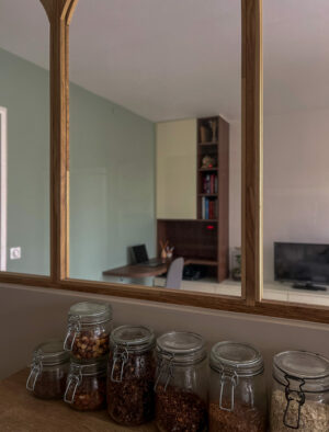 L’installation d’une verrière atelier connecte cuisine et séjour, créant un espace ouvert lumineux et moderne. Cet élément architectural permet non seulement de gagner en luminosité, mais aussi de créer une atmosphère chaleureuse et moderne, parfaitement adaptée à la vie de famille.
